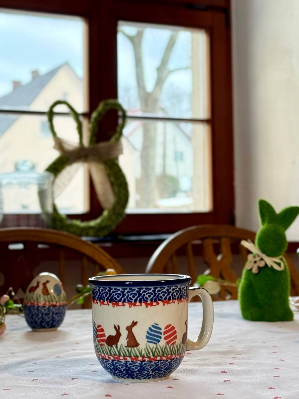 • Zdobienie: Ręcznie malowane unikatowe wzory, charakterystyczne dla bolesławieckiej tradycji ceramicznej