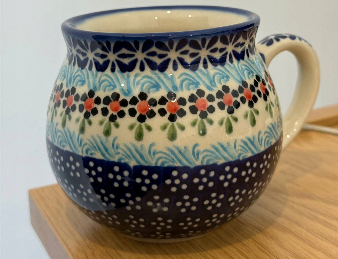 • Zdobienie: Ręcznie malowane unikatowe wzory, charakterystyczne dla bolesławieckiej tradycji ceramicznej