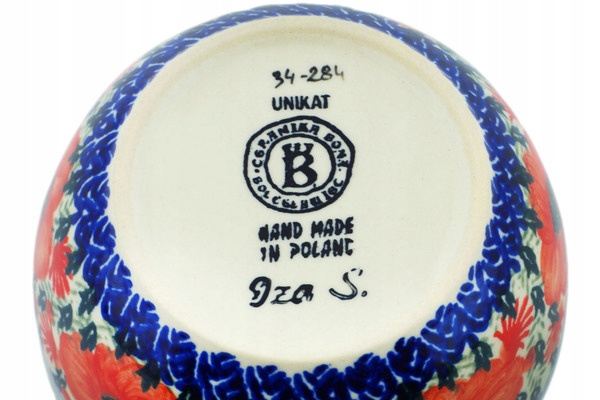 • Zdobienie: Ręcznie malowane unikatowe wzory, charakterystyczne dla bolesławieckiej tradycji ceramicznej