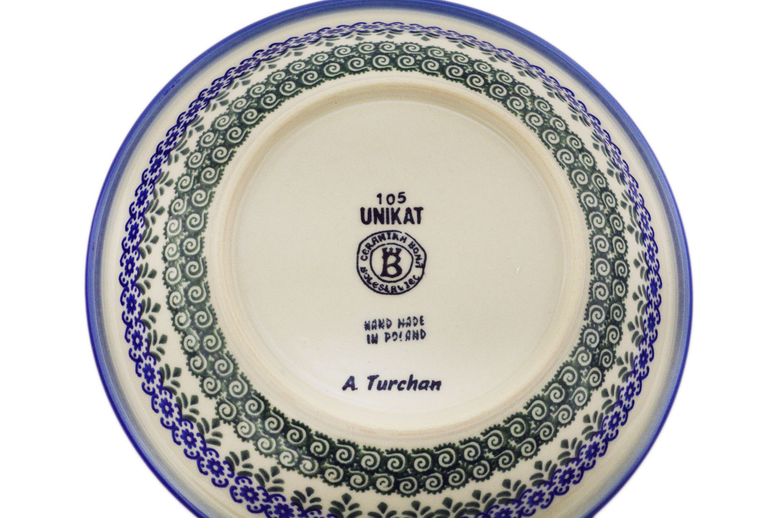 • Zdobienie: Ręcznie malowane unikatowe wzory, charakterystyczne dla bolesławieckiej tradycji ceramicznej